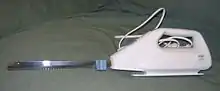 - An electrical device with two serrated blades that move with a sawing action, used for slicing food.