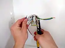 An electrician installing a socket