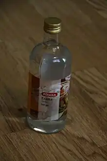 Borrowed from Old Swedish ätika, ultimately from Latin acētum.