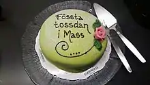 - Vissa smålänningar firar den den ”fössta tossdan i mass” med ”massipantåta”. […] ”Fössta tossdan i mass” – kan vara den nya småländska nationaldagen. Vi undersökte hur dagen firas. […] Folk beställer marsipantårta och då ska det ska glasyren vara skriven med den småländska stavningen – Fössta tossdan i mass, berättar Susanne Broqvist, konditor. […] Gun Björklund föddes i Göteborg men har bott i Småland i många år. Hon gick på café i dag men hade ingen aning om varför den här dagen är speciell. "Fössta tåtan i mass [sic] är det ju i dag", säger hon om dagen.