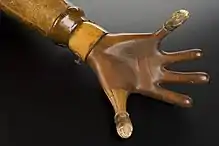 Wooden hand forming a finger fan