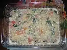 - A cold salad with cooked vegetables dressed with mayonnaise, mustard, and sour cream. Similar to Olivier salad but without meat.
