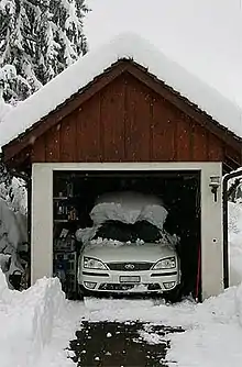 From French garage, borrowed via other languages.