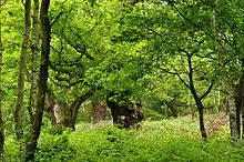greenwood (countable and uncountable, plural greenwoods)