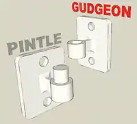 An illustration of a pintle and a gudgeon (etymology 2, sense 1) which fits into it to form a pivoting joint.