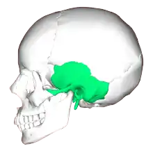 - (anatomy) temporal bone (either of two compound bones that collectively make up the sides and base of the skull)