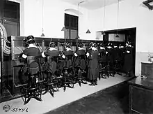 Members of the Signal Corps Female Telephone Operators Unit of the United States Army Signal Corps, known colloquially as “hello girls”, working at the General Headquarters in Chaumont, Haute-Marne, France, during World War I