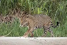 - A carnivorous spotted large cat native to South and Central America, Panthera onca.