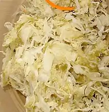- sauerkraut (dish made by fermenting finely chopped cabbage)
