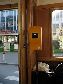 A ticket stamping machine on a tram in Brno