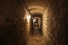- catacomb (underground system of tunnels and chambers with recesses for graves, used (in former times) as a cemetery)