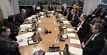Borrowed from another language (cf. Russian комиссия (komissija), Polish komisja), ultimately from Latin commissiō.