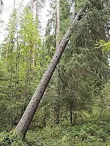- Some of the trees blown down by the storm are left leaning against another trees. One should not walk under such leaning trees, the bulletin says.