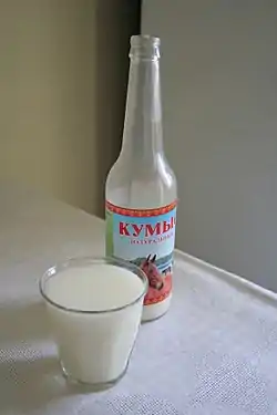 Borrowed from German Kumys, from Russian кумы́с (kumýs), from a Turkic language, from Proto-Turkic *kumïŕ.