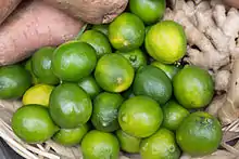 Borrowed from French lime, from Spanish lima, a back-formation from limón (“lemon”) (interpreted as having the augmentative suffix -ón), from Andalusian Arabic, from Arabic لَيْمُون (laymūn), from Persian لیمو (limu, “lemon”).