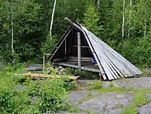 From a Sami language. Compare Northern Sami lávvu, lavvo.