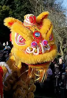 - A traditional Chinese dance where performers mimic a lion's movements in a lion costume.