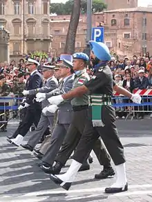 Italian, French, Spanish, Portuguese, Indonesian and Indian military personnel in uniform during a parade in Rome, Italy