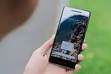 - (Netherlands, usually in the diminutive) A mobile phone, cellphone, mobile.