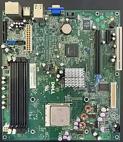- (computer hardware) The primary circuit board of a personal computer, containing the circuitry for the central processing unit, keyboard, mouse and monitor, together with slots for other devices.