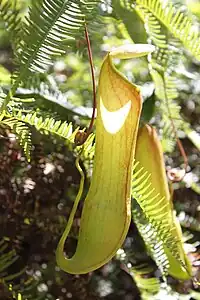 Nepenthes distillatoria, the type species of nepenthes (sense 2). A nepenthes is also known as a monkey cup or tropical pitcher plant.