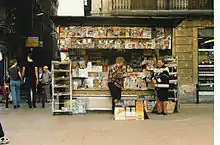 - an open stall, often on a street, where newspapers and magazines are on sale to the public