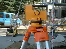 - (geodesy) level (optical instrument used to establish or verify points in the same horizontal plane in a process known as levelling)