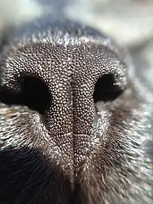 - The rhinarium or naked skin on the nose of most mammals.