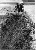 Ditch plow at work on a German field.