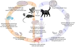 Life cycle of the parasitic protozoan Toxoplasma gondii which causes toxoplasmosis.