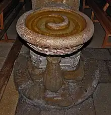 From Old Galician-Portuguese pia (13th century, Cantigas de Santa Maria), from Latin pīla (“mortar”). Cognate with Portuguese pia and Spanish pila.
