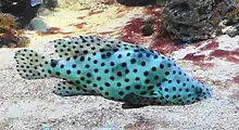 - (countable) humpback grouper, panther grouper, barramundi cod (Cromileptes altivelis)
