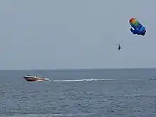 parasail (third-person singular simple present parasails, present participle parasailing, simple past and past participle parasailed)