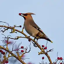 - (less specifically) A waxwing, any bird of the genus Bombycilla