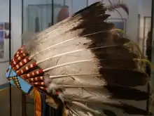 - war bonnet (ceremonial headdress, decorated with a trailing extension of eagle feathers, worn by some Native American peoples)