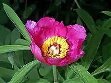 Borrowed with metathesis from Polish piwonia or Belarusian півоня (pivónja), both from Latin paeōnia.