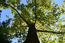 Borrowed from Latin platanus, from Ancient Greek πλάτανος (plátanos).