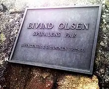 A plaque (plakett) commemorating the builder of a spiral tunnel.