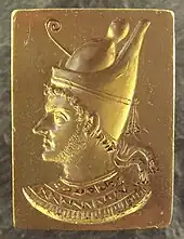 A gold ring with an engraved portrait of Ptolemy VI Philometor (c. 186–145 BCE), a king of Egypt of the Ptolemaic dynasty, wearing the pschent. The ring dates to between the 3rd and 2nd centuries BCE.