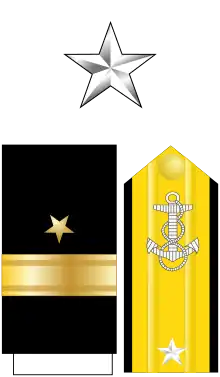 - (US, military, nautical) A commissioned officer in the United States Navy, Coast Guard, NOAA Corps, or PHS Corps of a grade superior to a captain and junior to a rear admiral (upper half). A rear admiral (lower half) is equal in grade or rank to an Army, Marine Corps, or Air Force brigadier general.
