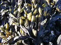 - In addition to gas bladders, the thallus of reproductive rockweed, Fucus, has inflated tips called receptacles. The small bumps on the surface of each receptacle are conceptacles, chambers within which the gametangia grow.