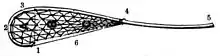 - (lacrosse) The long narrow body of a lacrosse stick.
