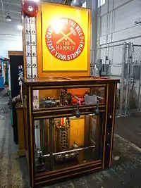 - strength tester machine (type of amusement personality tester machine, which upon receiving credit rates the subject's strength, according to how strongly the person presses levers, squeezes a grip, or punches a punching bag)