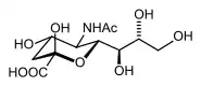 - (organic chemistry) Any of a group of amino carbohydrates that are substituted forms of neuraminic acid; they are components of glycoproteins and mucoproteins