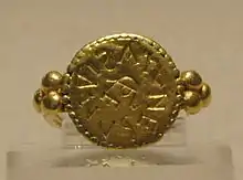 - (historical) An object (especially a ring) formerly used to impress a picture into the sealing wax of a document as a proof of its origin.