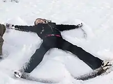 en flicka som gör en snöängel