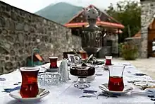 1. Tea is drunk from glasses (as ones that can be seen on the image) rather than cups in Azerbaijan.