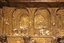 1. (art) A form of bas relief developed by Donatello with very little variation in depth of carving, where the sense of depth is given by perspective rather than actual three-dimensionality.