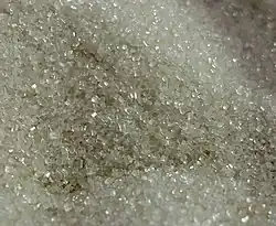 - sugar (sucrose from sugar cane or sugar beet and used to sweeten food and drink)