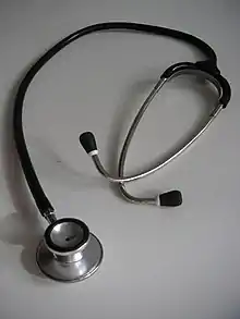 - (medicine) stethoscope (a medical instrument used for listening to sounds produced within the body)